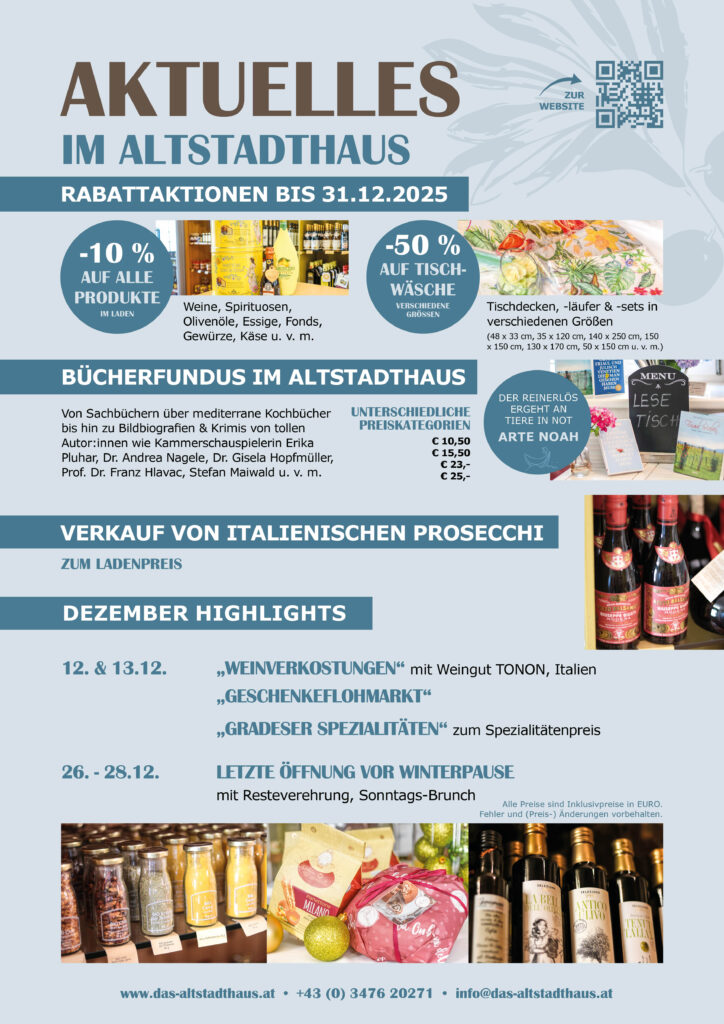 Bleiben Sie auf dem Laufenden über bevorstehende Events, entdecken Sie unsere einzigartigen Spezialangebote und notieren Sie sich unsere Sonntags-Sonderöffnungen mit gemütlichem Altstadthaus-Brunch in Ihrem Kalender. Außerdem bieten wir spannende Berichte vor und nach unseren Veranstaltungen, damit Sie nichts verpassen!